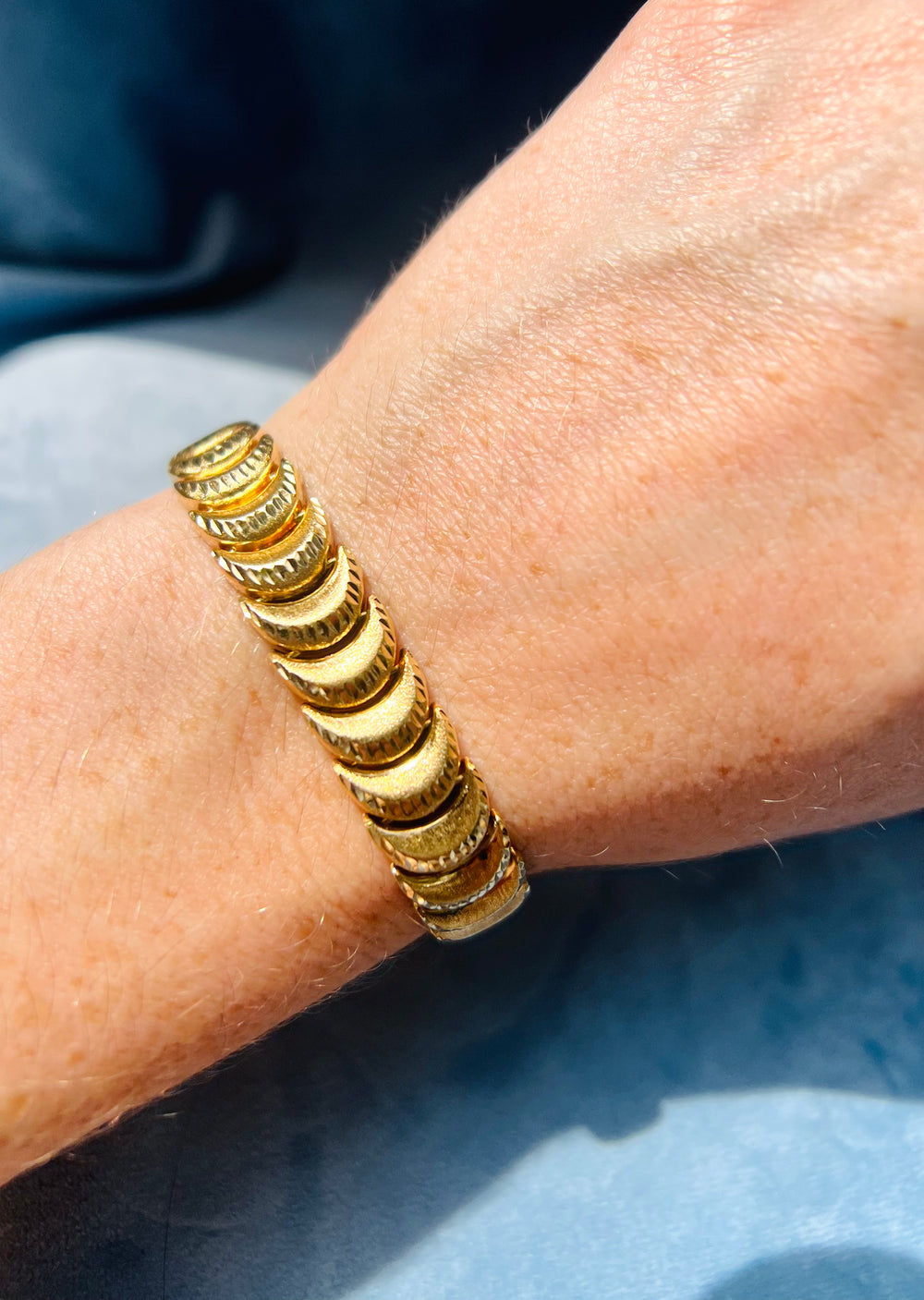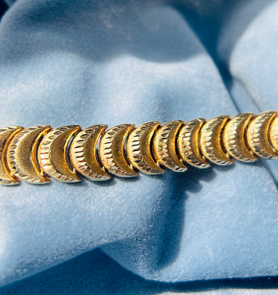 Crescent Moon Luxury Vintage Diamond Cut Bracelet Heavy Solid 14k Yellow Gold