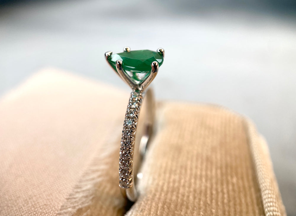 Perfect Pear Emerald and Diamond Ring in 14k White Gold