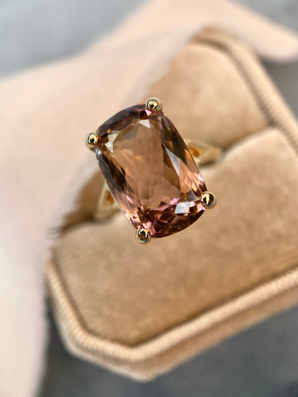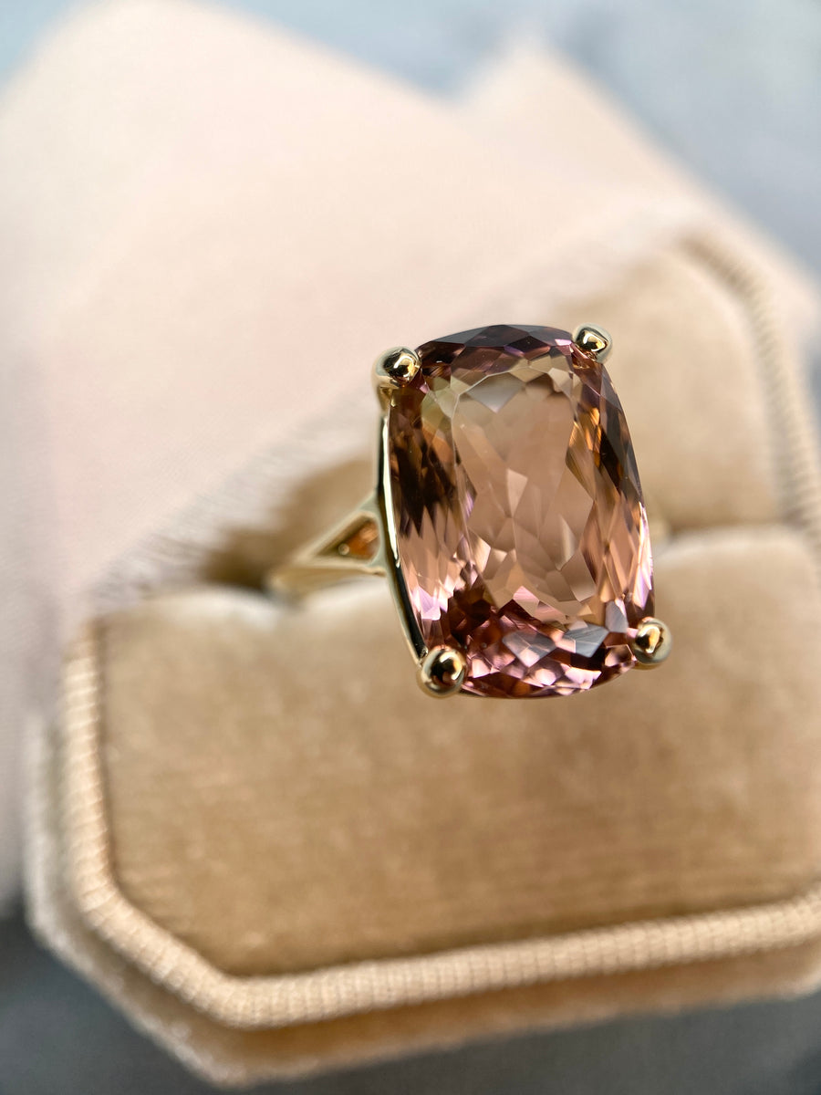 Pink Skies 7.11ct Cushion Tourmaline in 14k Yellow Gold
