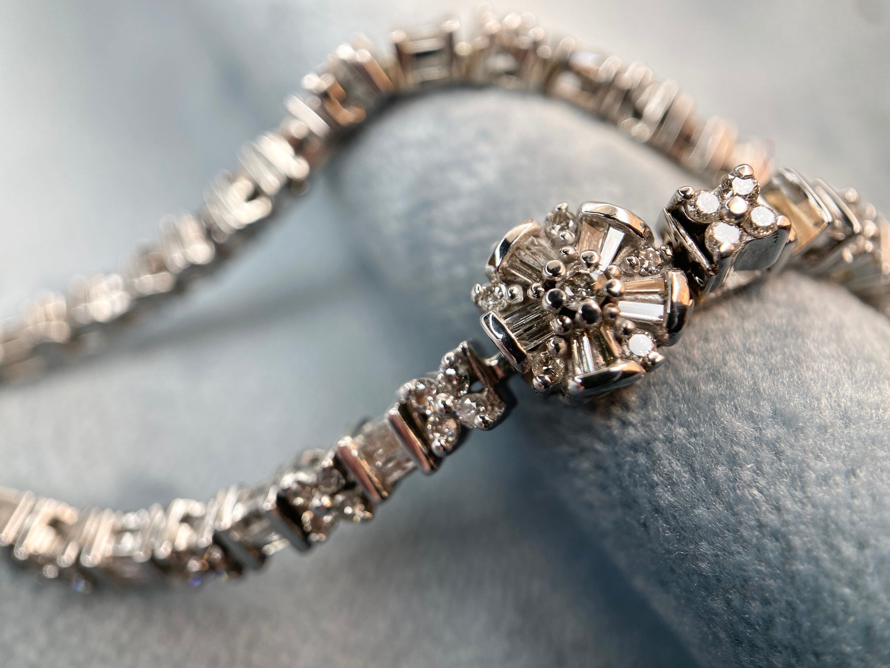 This charming bracelet features natural diamonds set in solid 14k white gold. We love how the snowflake design complements the diamonds. It's perfect for this winter season!